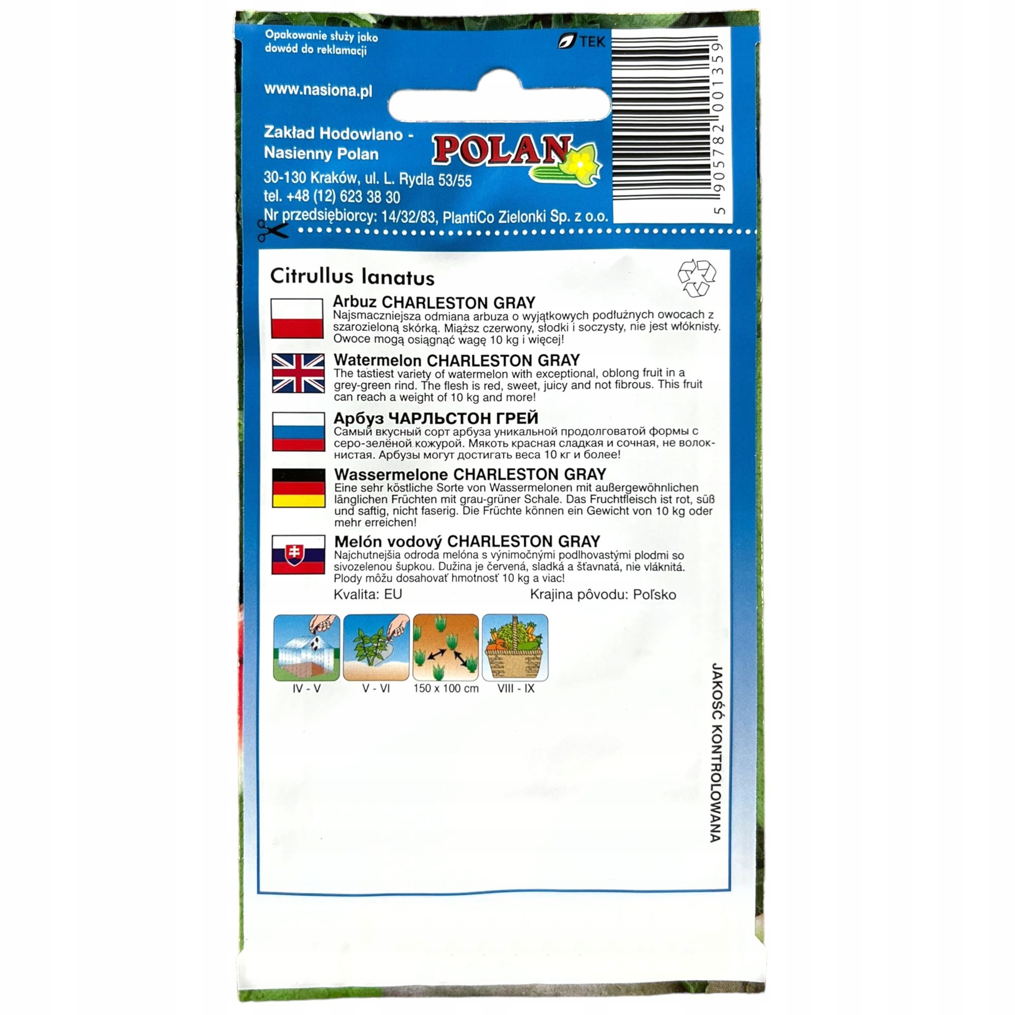 Polecamy do własnej uprawy warzywa od sprawdzonego polskiego producenta: szarozielone, podłużne arbuzy super słodkiej odmiany kawonów Charleston Gray.