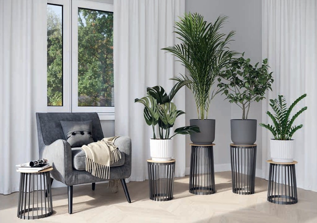 Efektowny, wykonany z tworzywa kwietnik Standy, daje wiele możliwości aranżacji dzięki różnorodności dostępnych wkładów i blatów, które można łączyć dowolnie.