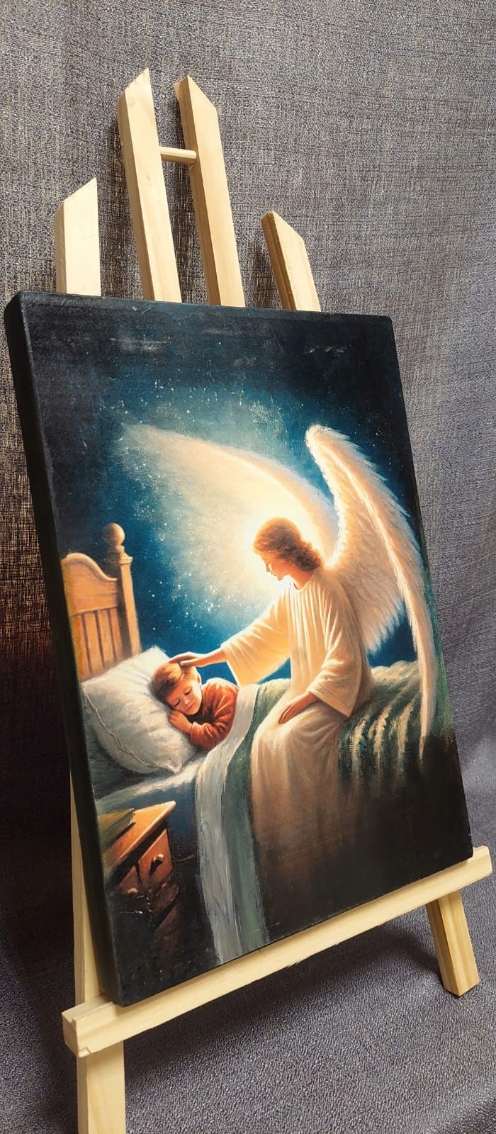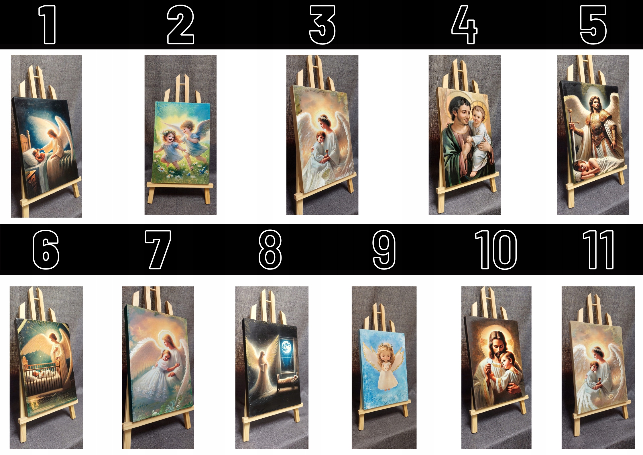 Każdy obraz stworzony został z dbałością o detale na solidnej, drewnianej desce. Delikatne i pełne emocji kompozycje z aniołami stróżami, Jezusem i świętymi tworzą wyjątkową atmosferę duchowości, opieki i ciepła.