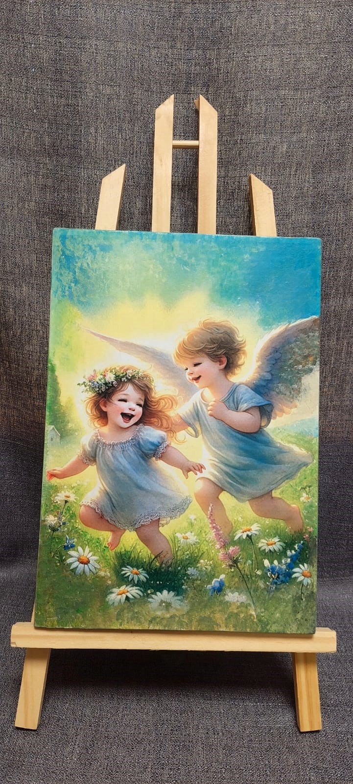 - Dwa radosne aniołki biegnące po łące